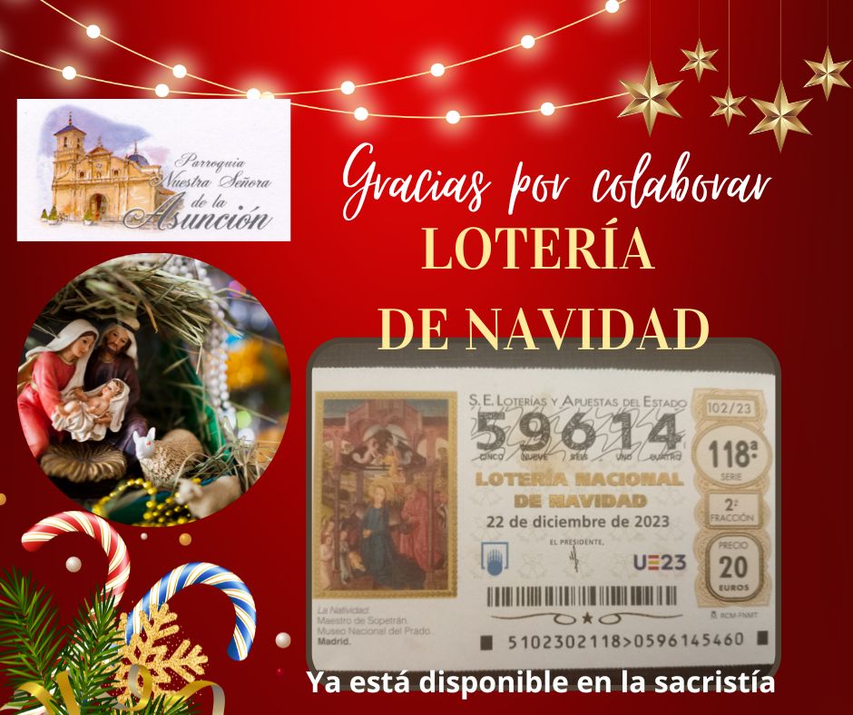En la sacristía de nuestra Parroquia puedes colaborar comprando décimos de la lotería de Navidad del número 59614. Gracias por colaborar.
