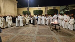 La luz del Cirio Pascual fue abriéndose paso en la oscuridad, simbolizando la Resurrección del Señor. La ceremonia, marcada por la solemnidad y el recogimiento, contó con la presencia de todos los sacerdotes de la parroquia, quienes presidieron y acompañaron la liturgia de manera conjunta.