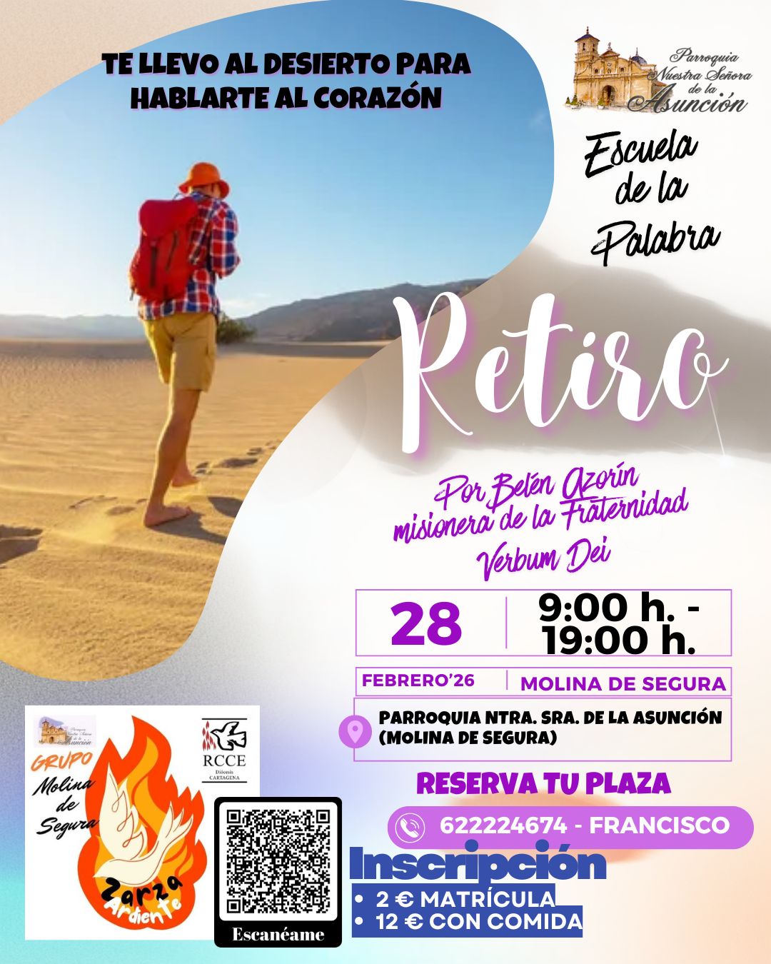 Os invitamos a todos a vivir esta jornada en la que nos retiramos al desierto para que Dios nos hable al corazón. Así nos puede sanar, iluminar, enriquecer, alegrar…