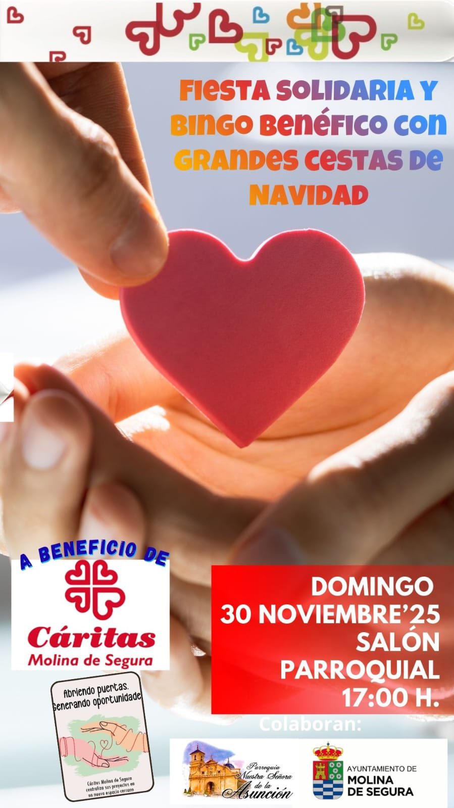 El pasado domingo 30 de noviembre, a las 17:00 horas, nuestro salón parroquial acogió una entrañable fiesta solidaria y bingo benéfico a favor de Cáritas de Molina de Segura. La convocatoria tuvo una magnífica respuesta por parte de la comunidad, reuniendo a un gran número de asistentes que quisieron aportar su granito de arena.