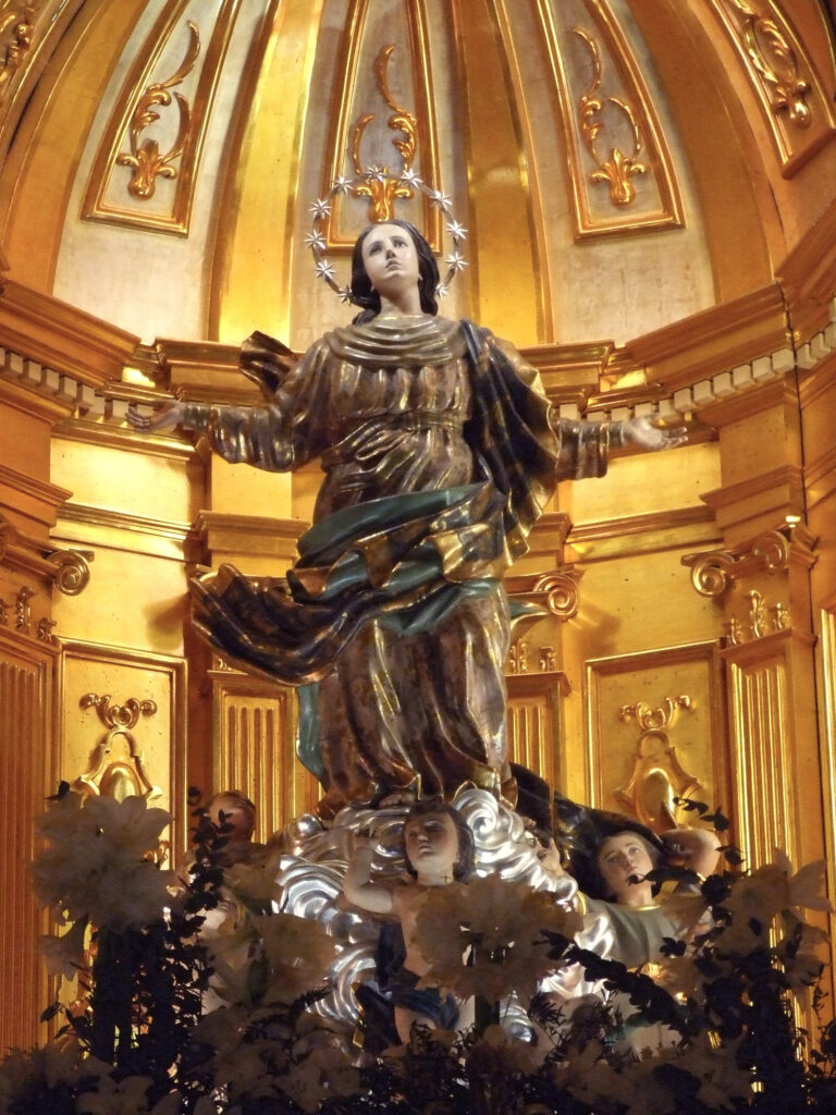 En 1635 aparecen por primera vez los gastos para la fiesta de la Asunción, dato importante porque nos habla de unas aceptables fiestas para la patrona parroquial. En el siglo XVII había ya preocupación por la imagen. Hay datos, en 1659, del gasto de 58 reales para un manto de tafetán dorado.